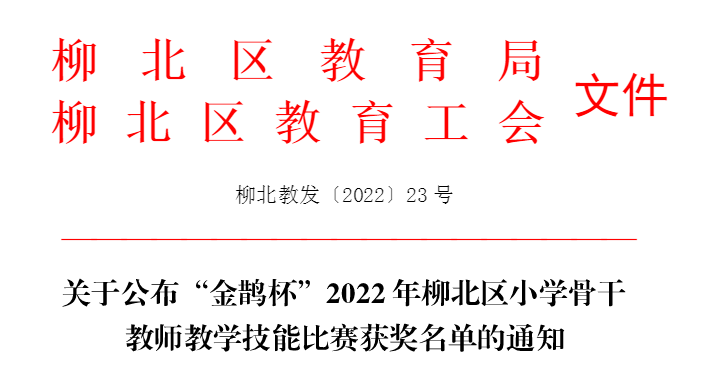 “金鹊杯”2022年365bet体育_microsoft365版本_365英超小学骨干教师教学技能比赛,经过学校初赛、城区决赛,于2022年3月18日结束,柳州市雀儿山路小学陆文娟等365bet体育_microsoft365版本_365英超